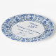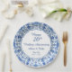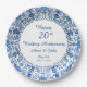 Personnalisez ces plaques de fête en papier d'Asie orientale avec les noms et les détails commémorant votre événement. Le texte de l'espace réservé indique 'Joyeux 20ème anniversaire de Mariage, Anne & John' en bleu oriental antique avec dates d'anniversaire, mais tout le texte peut être changé. La décoration ornée autour de la circonférence est un design vintage d'origine asiatique.