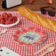 Les assiettes en papier pour la douche de la mariée sont disponibles en 2 tailles avec des roses rouges sur des rayures diagonales blanches et noires, parfaites pour les douches de la mariée sur le thème de Derby ou tout autre événement. ARTICLES assortis dans notre magasin.