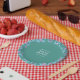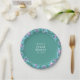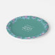 Assiettes en papier pour enterrement de vie de jeune fille avec motif mandala floral bohème rétro en vert sarcelle, bleu aqua et violet magenta.