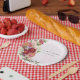 Assiettes En Carton Mariage Boho rouge rose vif Fleurs blanches