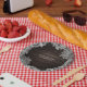 Assiettes de mariage Bois Rustique Foncé et Dentelle Élégante. Des articles assortis sont disponibles.