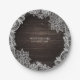 Assiettes En Carton Mariage Bois Rustique Foncé et Dentelle Élégante