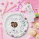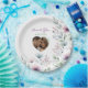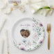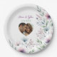 Belles assiettes en papier personnalisées pour le dîner de mariage. Une élégante aquarelle de fleurs de prune pourpre avec feuillage et design floral vert sauge et bleu poussiéreux. Ajoutez vos noms et photo sur ces serviettes dans la zone de personnalisation. Celles-ci sont belles pour un dîner de réception de mariage ou pour une douche de mariée ou une soirée de filles.