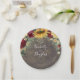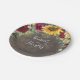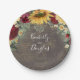 Assiettes en papier pour mariage champêtre automnal rustique avec baby's breath, marguerites, roses rouges burgundy et tournesols