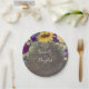 Assiettes en papier pour mariage champêtre rustique d'automne avec baby's breath, marguerites, roses violettes, tournesols