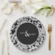 Assiettes En Carton Mariage damassé florale moderne noir & blanc éléga