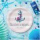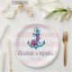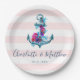 Plaques de papier mariage nautique design avec ancre avec fleurs sur un arrière - plan de rayures roses.