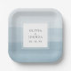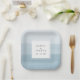 Plaques en papier Mariage bleu aquarelle. Ces belles et élégantes assiettes en papier bleu mariage poussiéreuses présentent un arrière - plan sombre à l'aquarelle avec les noms de mariée et de mariée et la date mariage. Trouvez les articles correspondants dans la collection de Mariages Dusty Blue Watercolor Ombre.