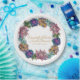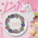 Une aquarelle brillante succulente dans une couronne avec le nom du couple et la date du mariage.