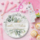 Ce dessin présente une illustration de feuillage vert et or et de confettis aux effets dorés. Les noms de mariée et de chambre sont écrits dans la police de connexion du coeur. Si vous souhaitez utiliser cette police calligraphique, veuillez me contacter pour changer les noms. Sinon, vous pouvez ajuster le texte en fonction de vos besoins.