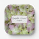 Personnalisez ces jolies plaques en papier Mariage de fleurs d'Hydrangée presque roses pour votre réception matrimoniale, fête de jardin ou douche nuptiale. Ces joyeuses plaques jetables à fleurs mariages personnalisées présentent une photo florale peinte numériquement gros plan d'une fleur d'hydrangée qui commence à devenir rose.