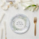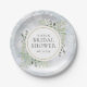 Avec des feuilles aquarelles délicates sur un fond de flocons de neige hivernaux, ces assiettes en papier pour la douche de la mariée botanique chic peuvent être personnalisées avec vos informations spéciales de douche de la mariée. Conçu par Thisisnotme©