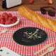 Cet élégant arrière - plan noir est décoré d'un lustre vintage couleur dorée. Le lustre en or damassé reflète son ombre qui contraste avec le noir. Le mélange des couleurs noir et or crée un style sophistiqué, tendance et chic. Conception élégante d'une plaque de mariage avec des éléments modernes. La configuration simple de la typographie lui donne un style distinct. Des invitations de mariage et d'autres articles de papeterie sont également disponibles.