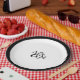 Des plaques en papier chic et simples ornent vos initiales jointes par un esperon de script décoratif pour former un design monogramme élégant. Vous pouvez modifier la couleur du monogramme et la bordure noire pour correspondre aux couleurs de votre mariage en sélectionnant "cliquer pour customiser plus loin" et en ajustant le texte et les couleurs arrière - plans. Parfait pour les mariages décontractés, les fêtes de fiançailles ou les dîners de répétition.