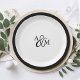 Assiettes En Carton Mariage de monogramme noir et blanc