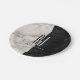 Ajoutez une élégance audacieuse à votre événement avec ces plaques de papier en marbre noir et blanc modernes, avec un design scindé minimaliste, des initiales monographiques élégantes et des noms de calligraphie élégants. Parfait pour les mariages, les fêtes de fiançailles, les dîners de répétition ou les célébrations formelles modernes. Élégant et personnalisable, ce design se marie joliment avec des thèmes neutres ou monochromes pour un look poli et très contrasté.