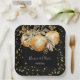 Plaques en papier à utiliser comme une vaisselle de réception de mariage pour une réception de mariage, un dîner de répétition ou une douche nuptiale, avec le thème de la Faire-part de mariage Noir Or Noël.