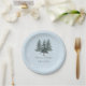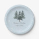 Assiettes en papier pour mariage aux arbres de pin hivernal modernes pour votre événement de mariage, réception, dîner de répétition ou douche de mariée avec le thème de mariage d'hiver.