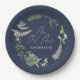 Assiettes En Carton Mariage de script botanique moderne bleu marine
