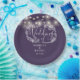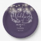 Ces assiettes en papier design avec de jolies lampes à cordes et un floral dessiné à la main peuvent être personnalisées avec vos informations en lettrage blanc chic sur un arrière - plan violet. Conçu par Thisisnotme©