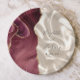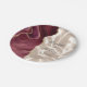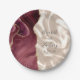 Ces élégantes assiettes mariages modernes présentent une aquarelle bordeaux ornée d'une parties scintillant en faux or. Customisez facilement le texte gris fusain sur une image arrière - plan de soie d'ivoire, avec les noms du couple en calligraphie manuscrite.