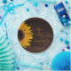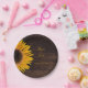 Rustique mariage pays brun bois grain jaune tournesol dîners de réception plaques rondes. Beau design simple d'impression de fleurs. Copyright de l'image Marg Seregelyi Photography.