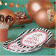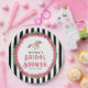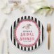 Cette assiette de fête Derby a un cheval de course à l'aquarelle avec un jockey en rose entouré d'une couronne de roses rouges avec la mention "Mariage". Il y a un fond rayé noir et blanc. Vous pouvez personnaliser avec un nom et une date.