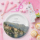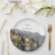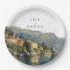 Ces élégantes assiettes en papier pour mariage au Lac de Côme aquarelle peuvent être personnalisées avec vos informations en typographie moderne. Conçues par Thisisnotme©