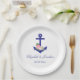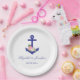Ancrage nautique bleu conçu avec des fleurs de ranunculus roses et blanches avec une végétation d'eucalyptus pour un événement d'été