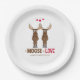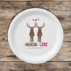 Mignon élan fantaisiste disant "ça doit être l'amour". Ce design présente une fête de fiançailles de mariage, un élan drôle mignon fantaisiste, avec serviette en papier cocktail cœurs rouges, typographie script moderne élégante tendance, génial pour assiette en papier pour dîner des garçons de la répétition, humour cartoon simple minimaliste minimal, assiette "ça doit être l'amour", citation drôle pour couple de jeunes mariés, un couple fiancé nouvellement engagé, fête personnalisée sur mesure.