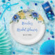 Cette assiette élégante et raffinée présente des fleurs aquarelles bleues, jaunes et blanches avec du feuillage. Le texte combine une écriture manuscrite et des polices serif pour un look stylé et moderne. C'est parfait pour une fête de mariage rustique de printemps ou d'été.