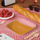 Assiettes En Carton Mariage Élégant Géométrique Rose Orange Moderne