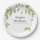 Elégant feuillage simple mariage à fleurs plaque papier. Personnalisé avec les noms et votre date de mariage. Un joli ajout customisé à votre réception, à votre soirée de fiançailles ou à tout événement mariage. Botanique swage verdure et jolies fleurs d'haleine de bébé. Ce design présente mariage élégant floral rustique moderne, aquarelle fête anniversaire botanique, simple eucalyptus feuillage de pays, fleuris succulent noms papier jetable, accueil boho simple verdure botanique, douche à couples, aquarelle vert feuillage, élégante et moderne douche fiançailles, mignonne tendance élégant rustique, idéal pour la décoration mariage vaisselle