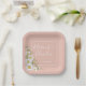 Jolie assiette en papier pour mariage printanier avec des coins de marguerites blanches aquarelle sur fond rose saumon avec des blocs de texte personnalisables en polices modernes