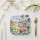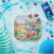 Jolies assiettes en papier personnalisées avec un champ de fleurs aquarelle en rose, bleu et violet. Ajoutez les initiales des mariés ainsi que la date du mariage dans la zone de personnalisation.