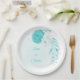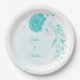 plat romantique en papier mariage turquoise et blanc fleurs.