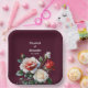 Elégante rose rouge foncé et rose blanche rose sur fond arrière - plan floral carré mariage Plaques en papier