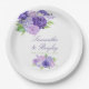 Plaques en papier mariage aquarelle fleurie avec couleur de l'année 2018 ultra violet avec des tons violet et vert sauge. Les fleurs comprennent hydrangée, lavande, pivoines et roses.