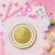 Assiettes en papier de mariage blanches et image or métallisé. Réception.