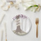 Plaques illustrant un arbre avec tronc enveloppé dans une bannière. Les feuilles sont lavande. Personnalisez avec des noms. Recherchez des invitations de mariage assorties et plus encore chez Jill's Paperie.