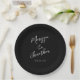 Assiettes En Carton Mariage Moderne à l'encre Blanche sur Fond Noir
