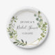 Assiette en Papier pour Mariage Moderne à l'Eucalyptus avec Cadre Géométrique.