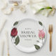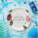 Une assiette en papier pour une fête prénuptiale chic et moderne, représentant deux belles roses posées sur un panneau arrière teinté, contenant les détails de votre fête prénuptiale dans un texte élégant. Conçu par Thisisnotme©