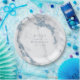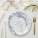 Un fond abstrait rappelant le marbre à veines scintillantes dans des nuances de bleu poussiéreux, de bleu acier et de blanc est la toile de fond de textes élégants en écriture cursive et de mises en page modernes dans les éléments de cette belle suite de mariage. L'assiette de mariage en papier présentée ici comporte un texte centré bordé de marbre élégant. Ajoutez facilement vos propres noms et date de mariage en utilisant le modèle fourni. Recherchez ID816 pour voir d'autres pièces et choix de couleurs pour cet ensemble.
