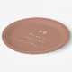 Simple Couleur Solide Terracotta Monogramme Réception Mariage Plaques en Papier Personnalisées. Ce mariage moderne ou tout autre événement Paper Plate design est simple et minimal avec une couleur arrière - plan unie et des polices de script de calligraphie signature tendance. Montré dans la palette de couleurs Mariage en terre cuite argileuse. Comprend également un simple monogramme sur le dessus. La collection de Mariage Chic Minimal fera de votre mariage un moment inoubliable et magnifique ! Pour en savoir plus, recherchez les collections mariages 2022 de Chic Paperie pour voir toutes les tendances design et couleurs mariages de cette année.