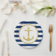 Assiettes En Carton Mariage nautique Ancre or Royal Blue Stripes