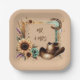 Assiettes de fête en papier rustique occidental de mariage M & Mme 7 pouces carrés, floral avec chapeau occidental et fer à cheval, parfait pour la vaisselle de mariage cowboy et cowgirl. Voir le thème correspondant dans la collection occidentale !