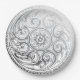 Une plaque ornementale en argent et en blanc étrusque romaine. C'est un magnifique et gracieux design décoratif circulaire qui conviendra aux douches nuptiales, aux fiançailles ou aux fêtes de style européen ! Le dégradé gris foncé à gris moyen à blanc crée un effet argenté. La façon dont le motif se fonde dans la plaque blanche est de qualité onirique. plaque étrusque, plaque romaine, plaque décorative européenne, plaque ornementale, plaque de douche nuptiale, plaque de douche nuptiale décorative, fête européenne, plaque de fiançailles,