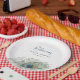 Un accord parfait avec notre gamme de mariage Paon à l'aquarelle, ces assiettes en papier élégantes sont une touche finale charmante. Le design présente une seule plume de paon à l'aquarelle avec votre texte personnalisé -- nom de l'invité d'honneur, type d'événement et date -- en lettrage bleu nuit et indigo coordonné.