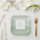 Aquarelle verte Plaques de papier Mariage. Ces belles et élégantes assiettes en papier mariage vert sauge présentent un arrière - plan à l'ombre aquarelle avec le nom de la mariée et du marié et la date du mariage. Trouvez les éléments correspondants dans la collection de Mariages Sage Watercolor Ombre.